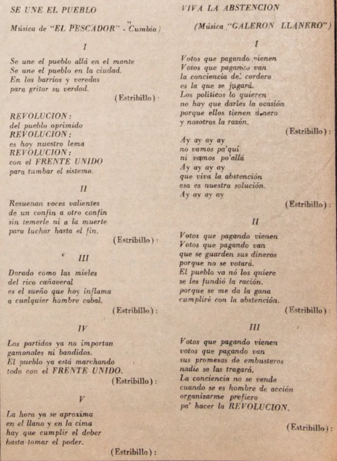 Compartimos las siguientes canciones populares y revolucionarias encontradas en el periódico popular Frente Unido.