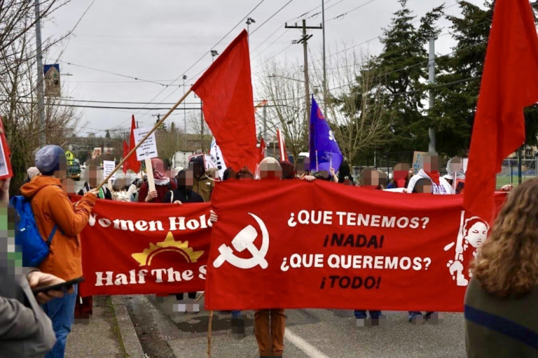 En Seattle, Estados Unidos, se realizó una manifestación roja organizada por Puget Sound Red Front y superó los 100 asistentes. En la marcha se honraron a revolucionarias como Clara Zetkin, Chiang Ching, Wilma Tiamzon o la Camarada Norah, entre otras. Múltiples unidades policiales aparecieron e intentaron acosar a los manifestantes pero estos últimos no detuvieron su marcha. El medio The Worker estuvo presente en el evento y realizó entrevistas a los compañeros participantes. Tras el evento se realizaron talleres sobre la importancia de organizar a las mujeres obreras, el peligro del posmodernismo y se saludó la lucha de la mujer en Barro Branco, Brasil, y se realizó un discurso honrando la memoria de Fausto Arruda.
