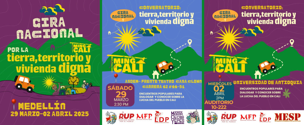 Entre el 29 de marzo y el 2 de abril, integrantes de Minga Cali estuvieron en la ciudad de Medellín, participando de varios eventos donde socializaron su experiencia en la lucha por tierra, territorio y vivienda digna.