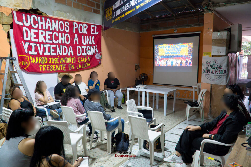 Los compañeros de Minga Cali expusieron la situación actual de tenencia de la tierra en Cali, donde sectores del gran capital junto con latifundistas, como los ingenios azucareros y las constructoras, controlan las instituciones del Estado para impedir que la tierra llegue a manos de las masas populares. Y no solo impiden el acceso a la vivienda, sino que, los diferentes gobiernos de turno, guiados por los intereses del gran capital y el latifundio, impulsan megaproyectos de infraestructura urbana, que implican el desalojo de miles de familias pobres, como lo son el Plan Jarillón y el Tren de Cercanías del Valle del Cauca. Con “el Plan Jarillón deben desalojar 8.000 familias, de las cuales van 5.000. Es una política de cualquier gobierno que llegue, sea el Partido que sea, la política es la misma: los pobres no tienen derecho a tener una tierra para vivir.”