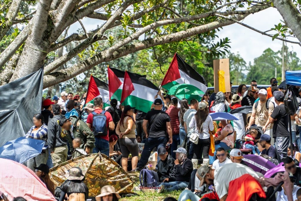 El pasado domingo 13 de julio, activistas y revolucionarios solidarios con la causa palestina realizaron un mitin a las afueras del Aeropuerto Internacional José María Córdova en Rionegro, Antioquia donde se estaba realizando la F-air – Feria Aeronáutica.