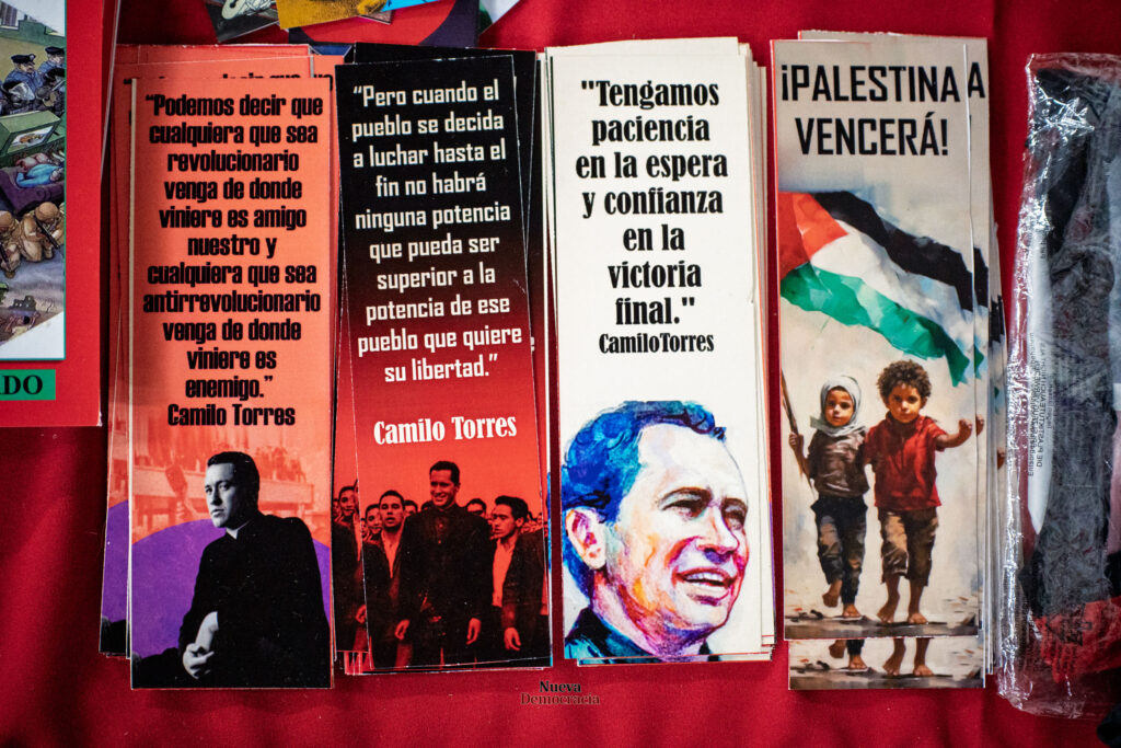 El foro se llevó a cabo, en medio de una decoración y ambientación que complementaba el contenido del mismo. Por ejemplo, en el auditorio se desplegó una gran bandera de Palestina con el mensaje “Palestina Libre”. Además, en las paredes del auditorio había varias fotografías de la heroica Resistencia Nacional Palestina, así como un cartel que decía “Viva la heroica resistencia del pueblo palestino”. También había fotografías y frases de Camilo Torres, con algunos de sus postulados. Los compañeros estudiantes desplegaron una tela que decía “¡Por la unidad de los revolucionarios en el Frente Unido! Camilo, tu ejemplo es el camino.” También hubo venta de publicaciones marxistas, textos de Camilo, separadores de libros, vasos, camisetas, entre otros artículos relacionados con las temáticas abordadas.