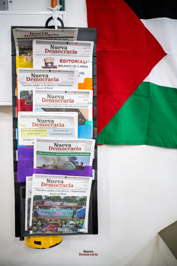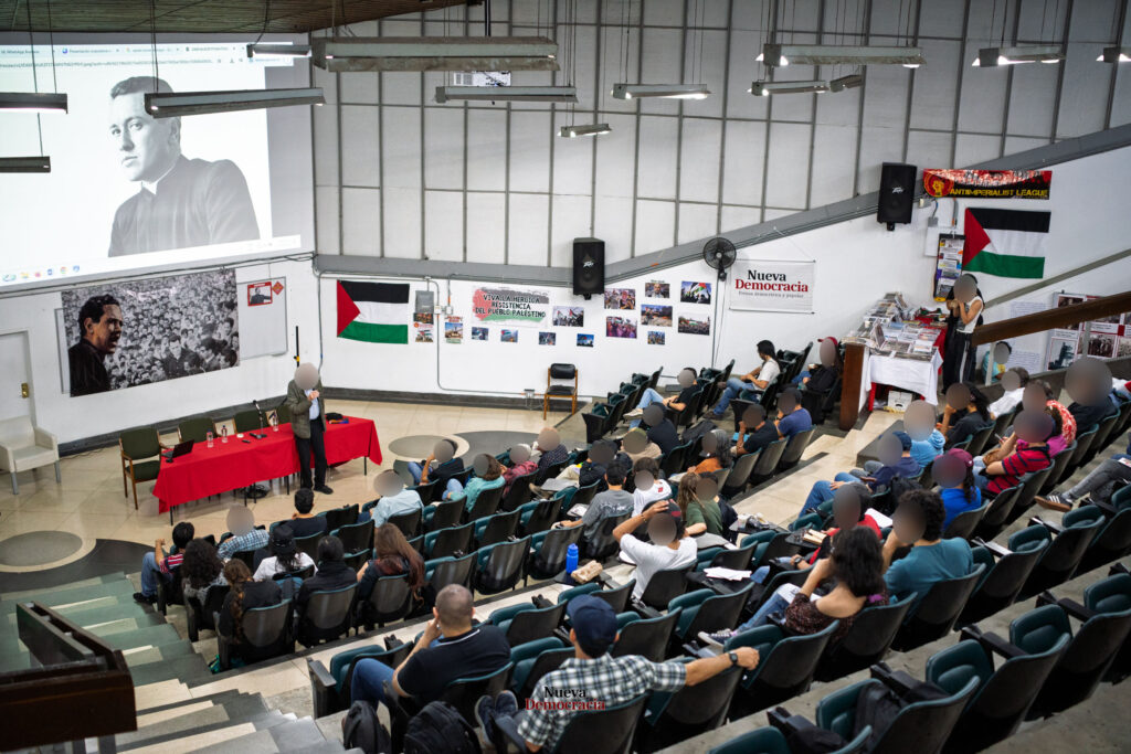 La segunda ponencia, realizada por Nueva Democracia, se enfocó en brindar información de los últimos dos meses, sobre el genocidio que está llevando a cabo Israel contra el pueblo palestino, y cómo frente a esa fuerte opresión, persiste una heroica Guerra de Liberación Nacional en Palestina, para la cual diversas fuerzas armadas palestinas han conformado un frente que lucha contra ese enemigo común. Se mostraron videos de las acciones armadas recientes realizadas por la Resistencia, en las cuales se puede apreciar el lanzamiento de misiles contra tanques y soldados sionistas; montaje de trampas explosivas por los caminos por donde pasan los tanques invasores; utilización de los escombros como trincheras para organizar todo tipo de trampas y ataques contra los nazis israelíes; entre otras acciones. Se expuso cómo la Resistencia ha golpeado los planes sionistas y del imperialismo yanqui en la región, siendo punta de lanza de la lucha antiimperialista mundial. Precisamente, la heroica acción realizada por Hamas y otros grupos de la resistencia, el 7 de octubre de 2023, ha revitalizado el movimiento antiimperialista mundial, al respecto también se mostraron imágenes de diferentes acciones de solidaridad en todo el mundo. Finalmente se plantearon algunas reflexiones o enseñanzas de la heroica Resistencia Nacional Palestina, pensadas para la conformación de un Frente Popular Antiimperialista en Colombia.