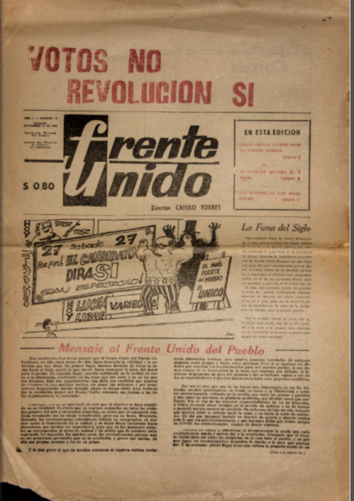 Consideramos importante mencionar, la propaganda y artículos críticos frente a la farsa electoral que planteaba el periódico. Consignas como “VOTOS NO, REVOLUCIÓN SI”, mostraban que el Frente Unido, al igual que Camilo Torres, eran conscientes de cómo las elecciones solo eran otro medio para engañar y desviar a las masas de la lucha.