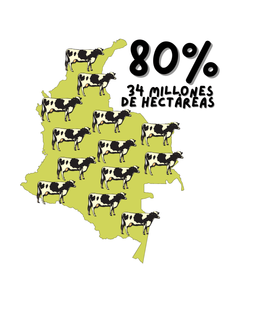 Además, la mayor parte de la tierra apta para producción agropecuaria se destina para ganadería,lo que genera algo absurdo: ¡Las vacas de los grandes terratenientes tienen más tierra que la mayoría de las familias campesinas!
