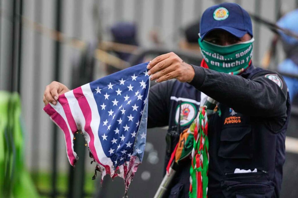 También en la capital del país, el 17 de octubre, se realizó una movilización hacía la Embajada de EE.UU., exigiendo la soberanía nacional, en contra de la injerencia del imperialismo yanqui en Colombia y América Latina, y en apoyo a la heroica resistencia del pueblo palestino. Sin embargo, la movilización fue reprimida por los antidisturbios de la policía, quienes no contaban con una gran resistencia por parte de comunidades indígenas y campesinas que hacían parte de la movilización. Cuatro policías fueron heridos por las flechas lanzadas por los indígenas.