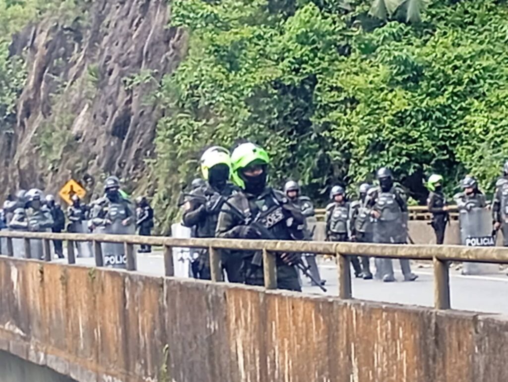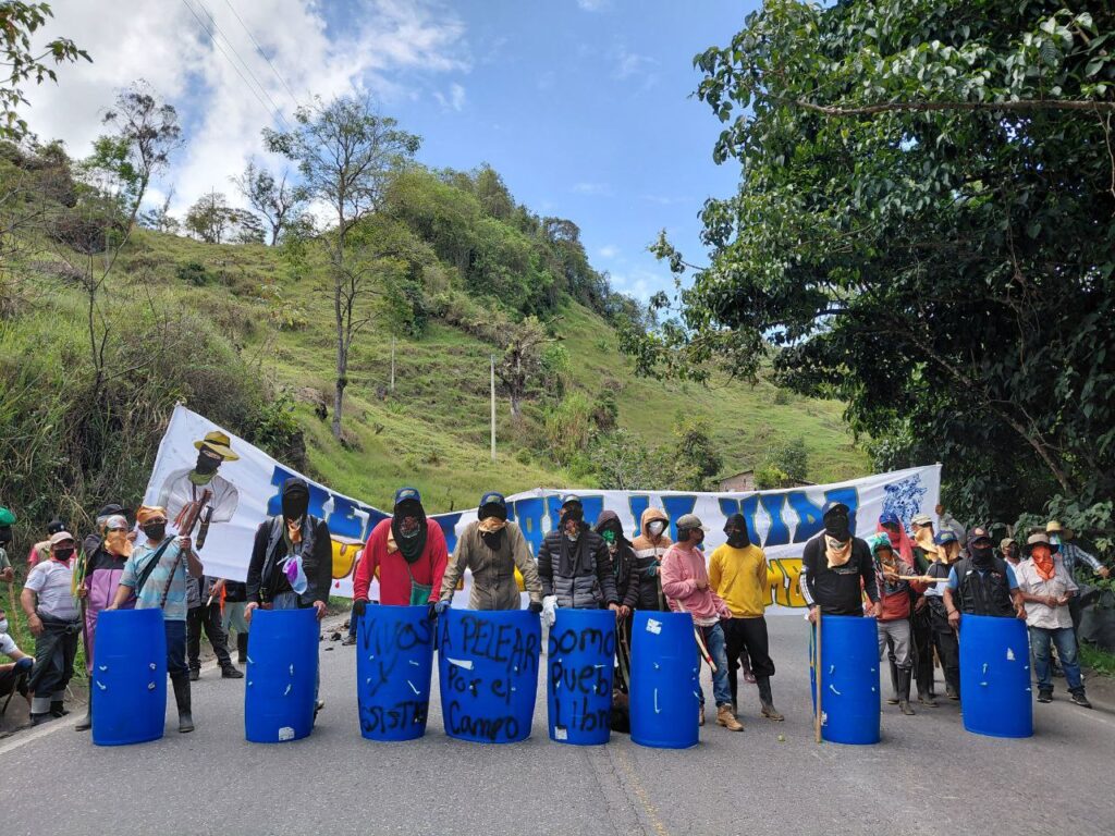 En la vereda El Céfiro, municipio Rosas, Cauca, cerca de 2.000 personas bloquearon la vía, argumentando que “nos juntamos desde el suroccidente a la movilización nacional porque los acuerdos incumplidos en este territorio son históricos.”