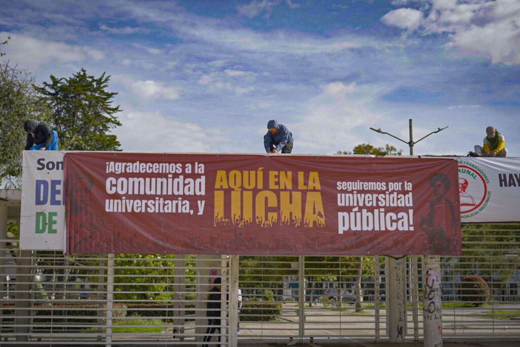 En Bogotá, en la sede de la Universidad Nacional, ese día fue instalado un Refugio Humanitario, con cientos de manifestantes provenientes de diferentes regiones del país, desde el cual se realizaba el siguiente reclamo: “Exigimos el reconocimiento estatal de la Emergencia Humanitaria. Entendemos que la raíz de toda esta violencia es la Doctrina de Seguridad Nacional que perpetúa el conflicto y señala a todas las personas que defendemos nuestros territorios como los «enemigos internos». Por eso también exigimos el desmonte de esa doctrina y de su brazo ejecutor en los territorios: el paramilitarismo, que nunca ha dejado de existir, pero hoy tiene mayor reconocimiento y beligerancia.” (Facebook CNAColombia). También denunciaron la resolución, 294 del 5 de septiembre de 2025, con la cual el gobierno Petro le otorgó calidad de actor político al Clan del Golfo- EGC, otorgado estatus político al paramilitarismo.