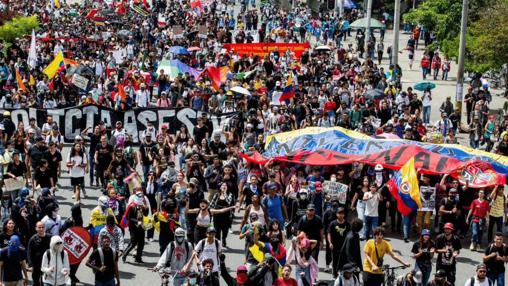 Las arengas tenían un denominador común: ¡Abajo la Reforma Tributaria! ¡Abajo la Reforma Pensional! ¡Abajo la Reforma de la Salud !¡Abajo la represión policial!
