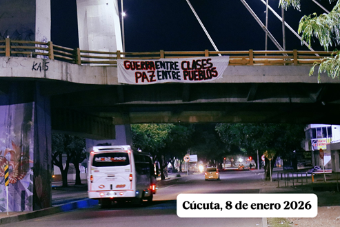 Por otra parte, sectores del movimiento popular vienen denunciando el actuar conciliador del gobierno. La cuenta de Instagram @es_ahora_col escribió que “Petro vuelve a desempeñar su papel predilecto: el apagafuegos de la lucha popular. Cuando la calle se enciende, cuando el pueblo se anima, cuando parece posible empujar una transformación profunda, él convoca, enciende ánimos, alimenta esperanzas… para luego sentarse a negociar con los mismos poderosos de siempre, enfriar la movilización y pedir calma en nombre de supuestos acuerdos. Así, la inconformidad social termina convertida en herramienta útil para reposicionar a los de arriba una vez más” y afirma que este espectáculo no hace más que fortalecer a Trump y rescatar políticamente a Petro en medio de la crisis”. Junto al comunicado se difundió el registro fotográfico de una acción realizada en la ciudad de Cúcuta, fronteriza con Venezuela, donde se colgó una tela con el mensaje “guerra entre clases, paz entre pueblos”.