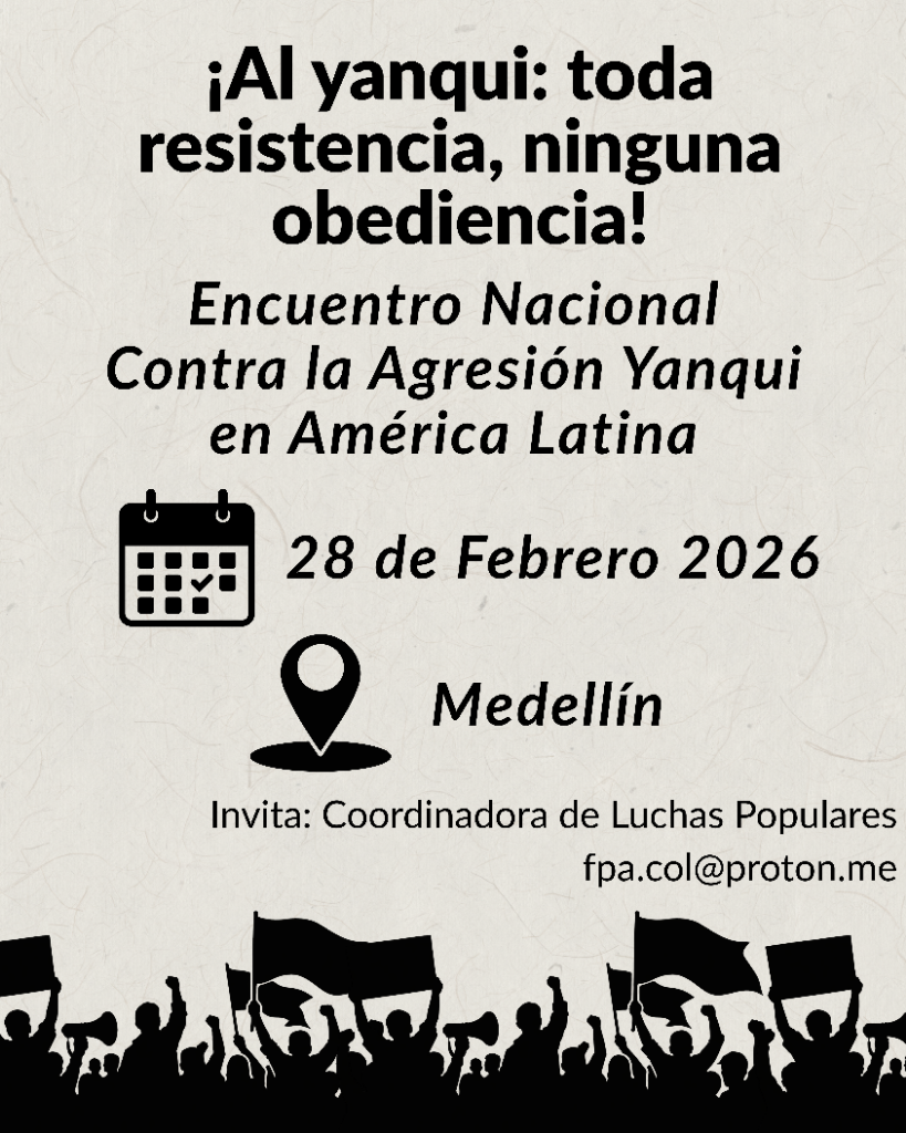 El dia de hoy, la Coordinadora de Luchas Populares publicó en su página web (clp25.wordpress.com) la fecha para el Encuentro Nacional contra la agresión yanqui en América Latina, definida para el día 28 de febrero.